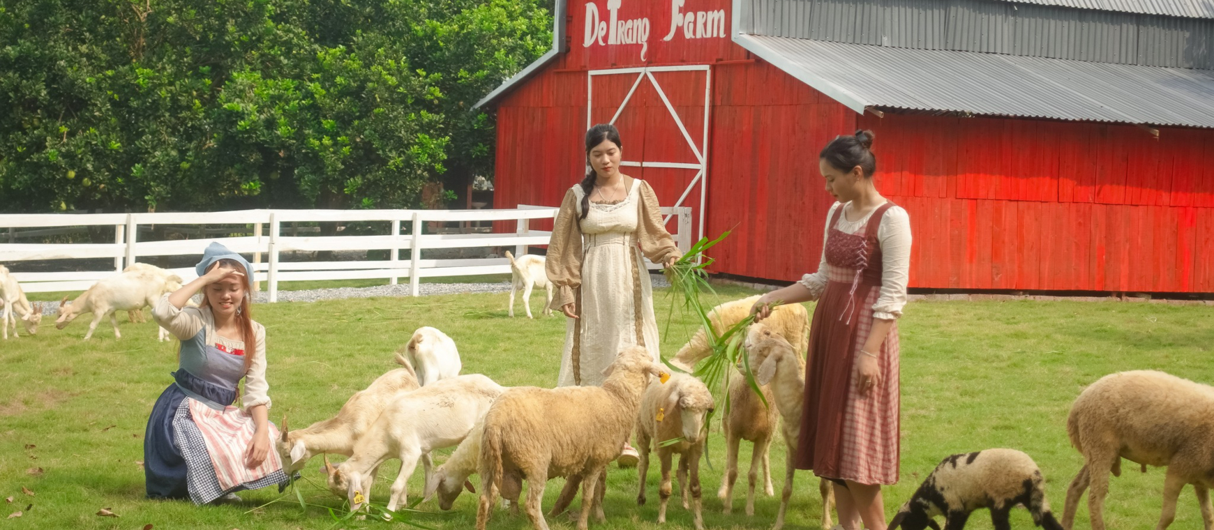 The White Goat Farm is a suitable destination for everyone. It is not only a place for fun, team building, and sightseeing but also a weekend getaway. Coming here, visitors – especially children – will directly participate in a series of activities at the Working Farm such as: horseback riding, feeding goats, milking goats, fruit picking, etc., and participate in many traditional games such as: pot breaking (đập liêu), sạp dancing (nhảy sạp), swinging (đánh đu), etc.