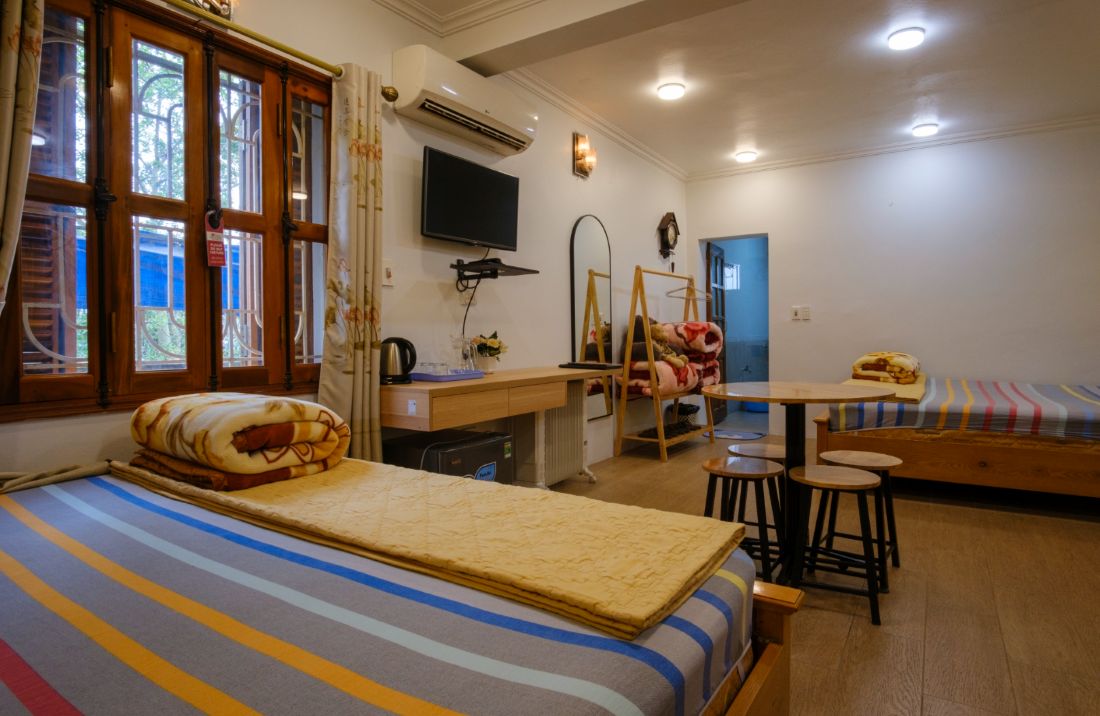 Previous Next Private Room near Pond 2 King size beds + 1 Twin size bed 23 square meters Suitable for 3 adults (+2 children) Wifi Pass: ttdqbavi